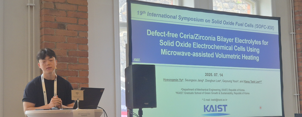 유형민 박사과정 학생은 "Defect-free Ceria/Zirconia Bilayer Electrolytes for Solid Oxide Electrochemical Cells Using Microwave-assisted Volumetric Heating"을 주제로, 이동훈 석박통합과정은 "Highly Stabilized Bismuth Oxides via F- doping for Solid Oxide Electrochemical Cells at Reduced Temperatures"를 주제로, 오세은 박사과정은 "Innovative High-Entropy Strategies for Developing Oxygen Electrodes in Protonic Ceramic Electrochemical Cells"를 주제로, 마지막으로 김형근 박사과정은 "Entropy-Engineered Perovskite Nanofibers for Highly Efficient and Robust Protonic Ceramic Electrochemical Cells"를 주제로 멋진 발표를 진행하였습니다.