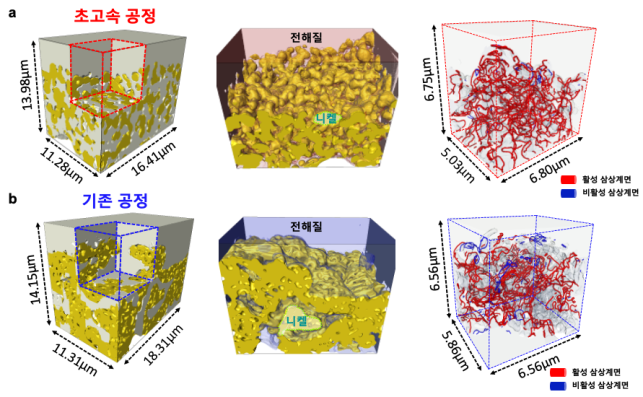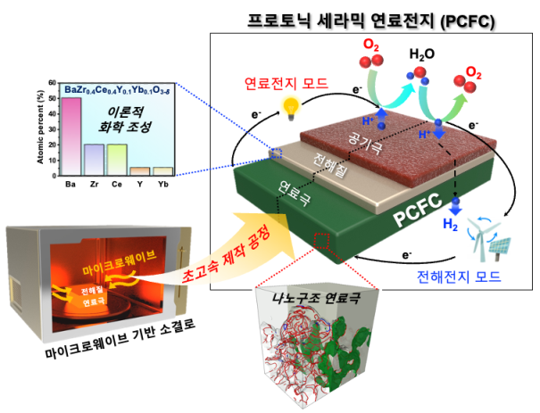 연구팀은 이러한 문제점을 해결할 방법으로 기존에 복사열로 장시간 (300분) 소결하는 방법 대신 흔히 전자레인지나 오븐 등에 쓰이는 마이크로파를 사용해 5분 만에 초고속 소결을 해 이론적 화학조성의 전해질을 갖는 프로토닉 세라믹 연료전지를 개발하는 데 성공했다. 이와 동시에, 초고속 온도 상승으로 연료극이 나노 구조화돼 전기화학적 활성 영역 또한 크게 확장됨을 증명했다. 연구팀은 이와 더불어 3차원 형상 복원 기술을 통해, 연료극 입자 미세화로 인한 삼상계면 길이의 증가가 전극 표면 활성 반응을 가속화하는 미세구조와 전기화학 특성 간의 상관관계를 규명했다.